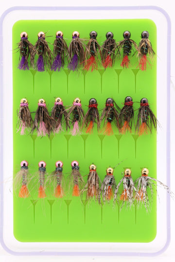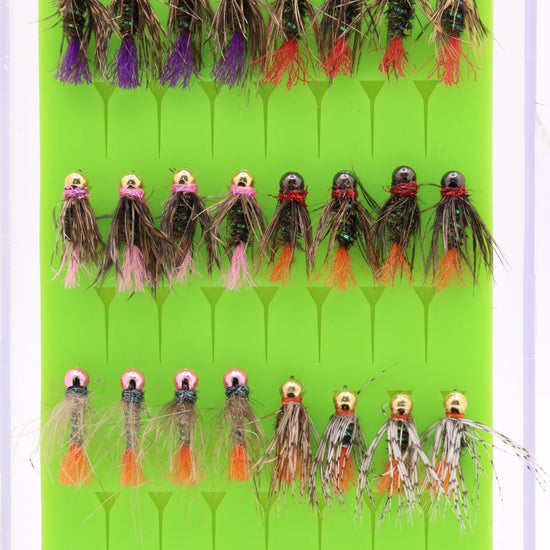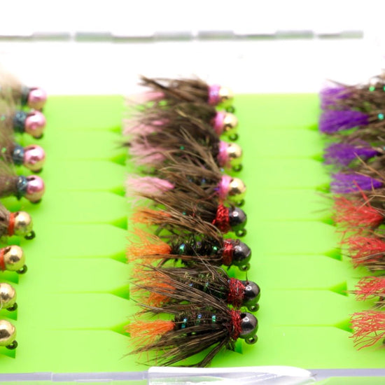 Turn up the heat with the Burn Unit Fly Box – packed with a deadly mix of our best-selling Blowtorch variations, all tied on #16 jig hooks. Designed to ignite strikes in any condition, each fly features hot spots, flashy bodies, and heavy tungsten beads to drop fast and fish deep. Whether you’re euro nymphing or tight-lining pocket water, this box is built for action.